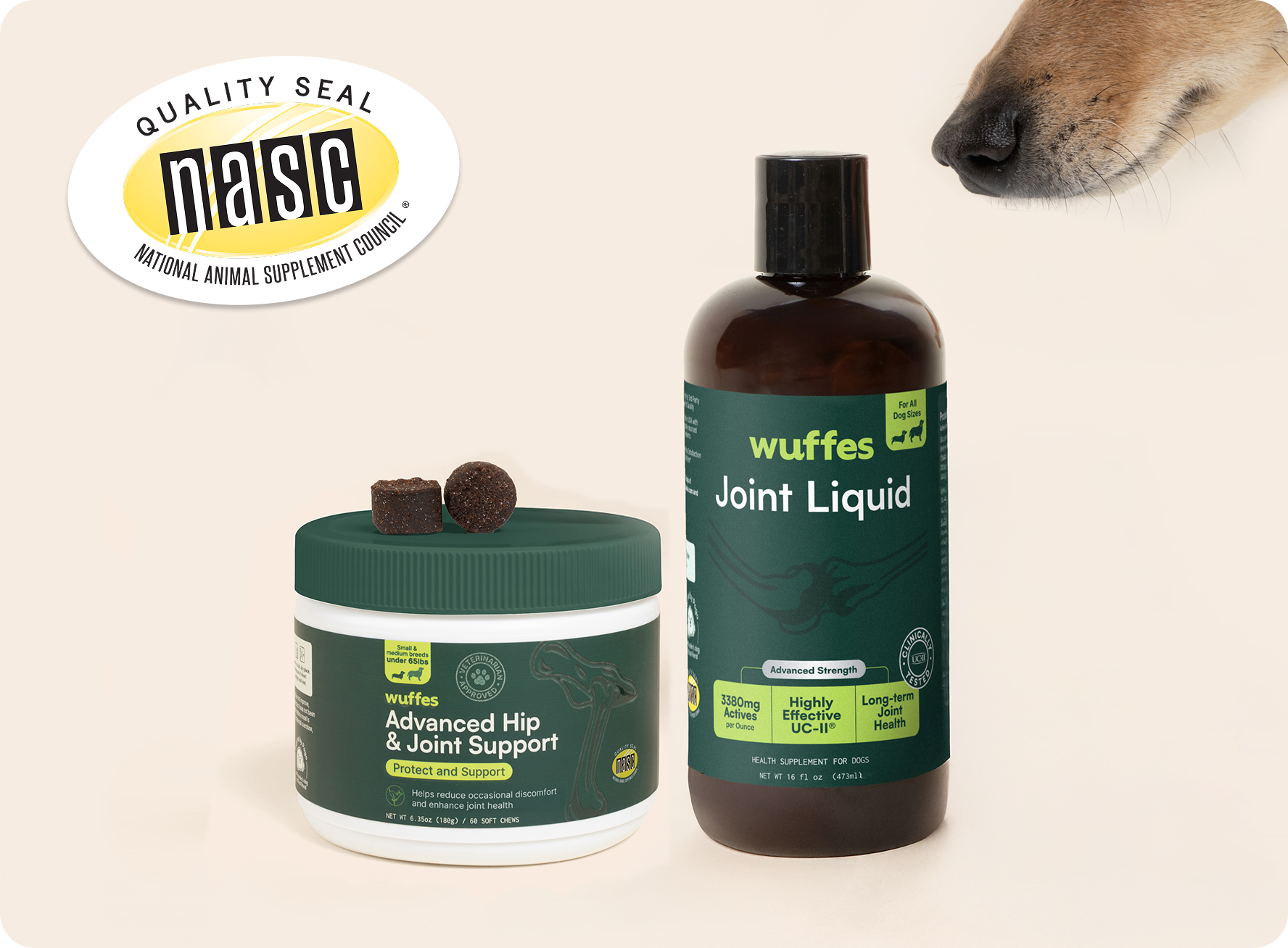 Choose between our Advanced Hip & Joint Support chews and Advanced Joint Liquid based on your pup’s preferences and levels of discomfort. They’re highly concentrated to protect and actively enhance bone & joint health.